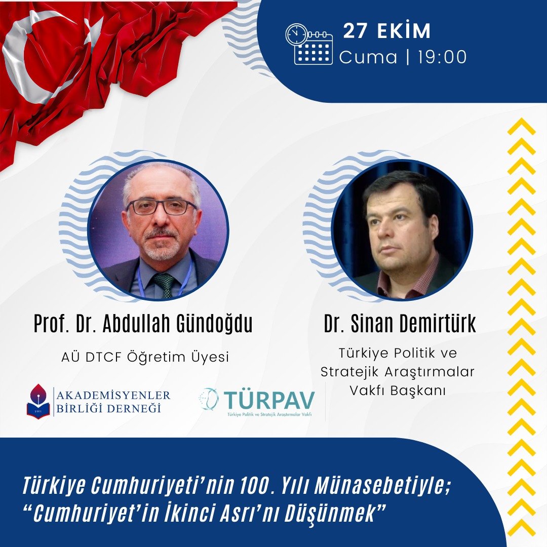 Derneğimizin geleneksel Cuma sohbetlerine bu haftaki konuğumuz, Ankara Üniversitesi öğretim üyesi Prof. Dr. Abdullah Gündoğdu idi. Cumhuriyetimizin 100. yılı münasebetiyle “Cumhuriyet’in ikinci asrını düşünmek” konulu bir konferans veren Prof. Gündoğdu’ya, Türkiye Cumhuriyeti’nin kuruluşunun Türk dünyası için anlamını da içeren güzel konuşmaları için teşekkür ediyoruz.